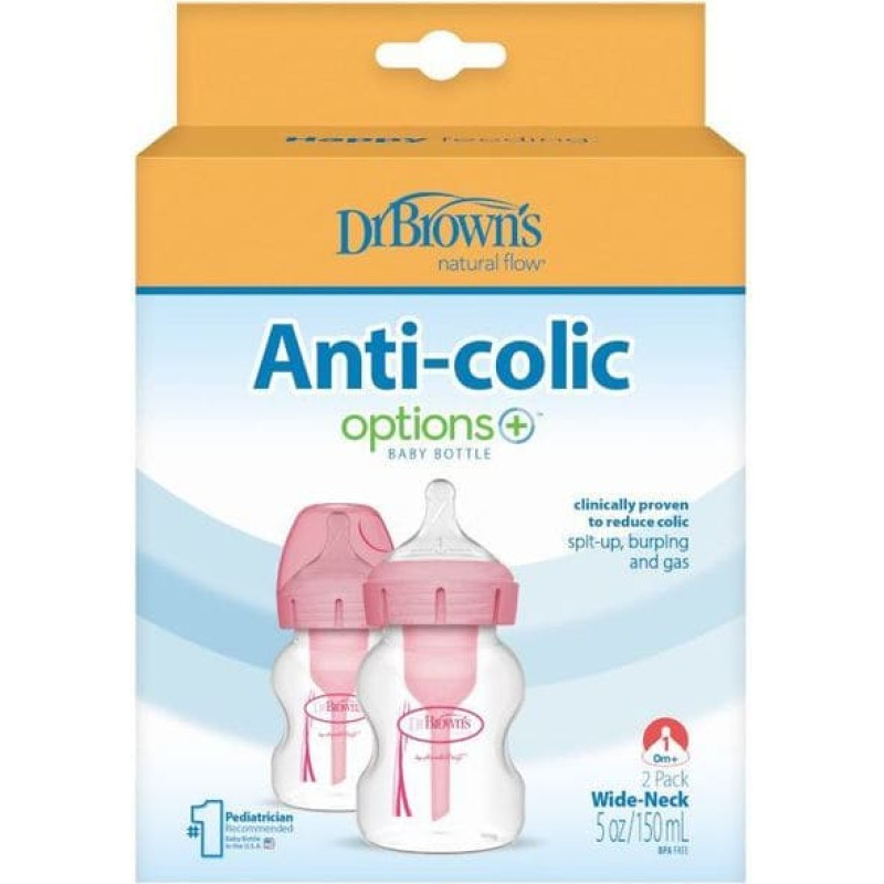 Dr. Brown’s WB52601 bredhalsflaska 150 ml OPTIONS+ 2-pack, rosa