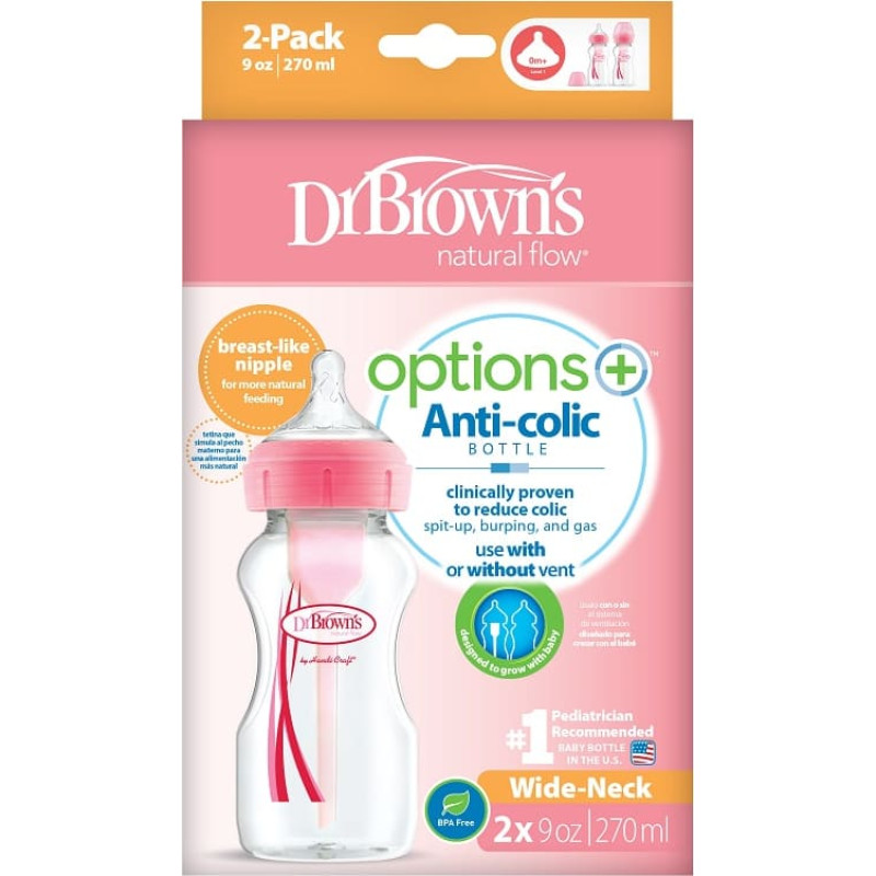 Dr.browns WB92601 Butelka szeroka szyjka 270 ml PP OPTIONS PLUS 2 PAK różowy