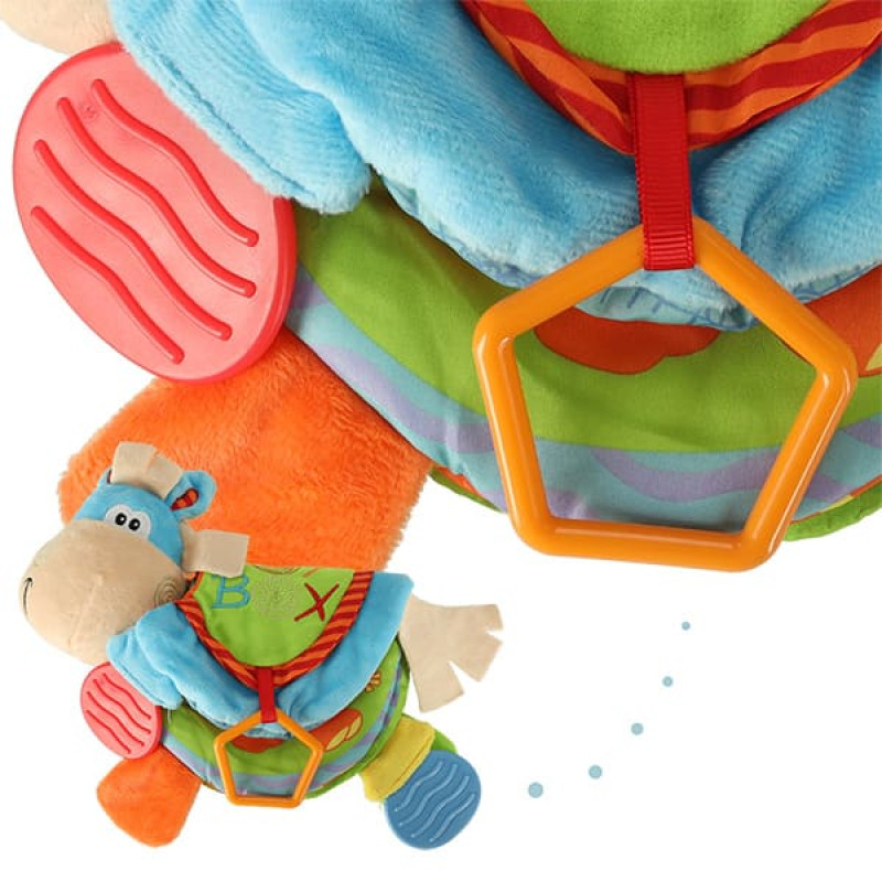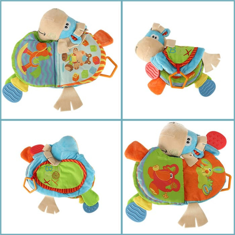 Izvēlēties pareizo rotaļlietu mazulim var būt grūti, jo ir vairāki svarīgi aspekti, kas jāņem vērā. Pirmkārt, rotaļlietā nedrīkst būt sīkas detaļas, bet tai jābūt pietiekami interesantai un stimulējošai. Tāpēc mēs iesakām iegādāties sensoro grāmatu! Sensorā grāmata ar daudziem elementiem ir rotaļlieta, kas nodrošina mazuļa vispusīgu attīstību. Katrā lappusē ir attēlots cits dzīvnieks, turklāt tā maigi šūpojas. Arī mīksto lapu krāsas ir izteiksmīgas, tāpēc ēzeļa grāmata ietekmē gan dzirdes, gan taustes, gan redzes maņu. Salocītajā manipulatīvajā grāmatiņā ir burvīgs ēzelis, kas noteikti kļūs par jūsu mazuļa mīļāko mīļo rotaļlietu. Dzīvnieks ir mīksts, un tā krāsas ir izteiksmīgas - tas piesaistīs ikviena mazuļa uzmanību. Dažādos izvirzītos elementus mazajam ir papildus interesanti vilkt un pat košļāt - jo ēzeļa abas kājas ir dažādu faktūru košļājamās rotaļlietas formā. Šis papildu pieskāriens būs ļoti noderīgs, kad mazulim sāks zelēt zobi un būs nepieciešams nomierināt sāpošās smaganas. Pretēji nosaukumam grāmatiņā nav teksta - tās mērķis ir izklaidēt un nodarbināt mazuļus, tāpēc tajā ir mīļi, krāsaini attēli un rūcošs pildījums. Ar grāmatiņu var spēlēties jebkurā vietā - gultiņā, ratiņos vai uz paklājiņa. Turklāt to var piekārt automašīnā, lai mazulis būtu aizņemts arī ceļojuma laikā. Galvenās produkta iezīmes: -