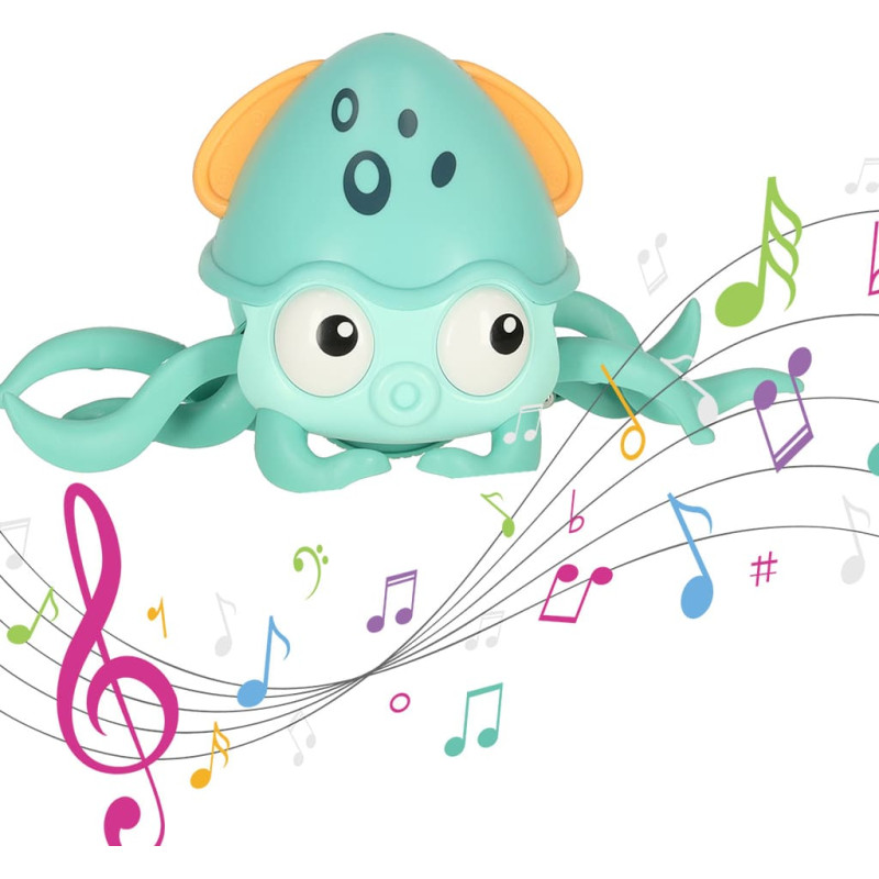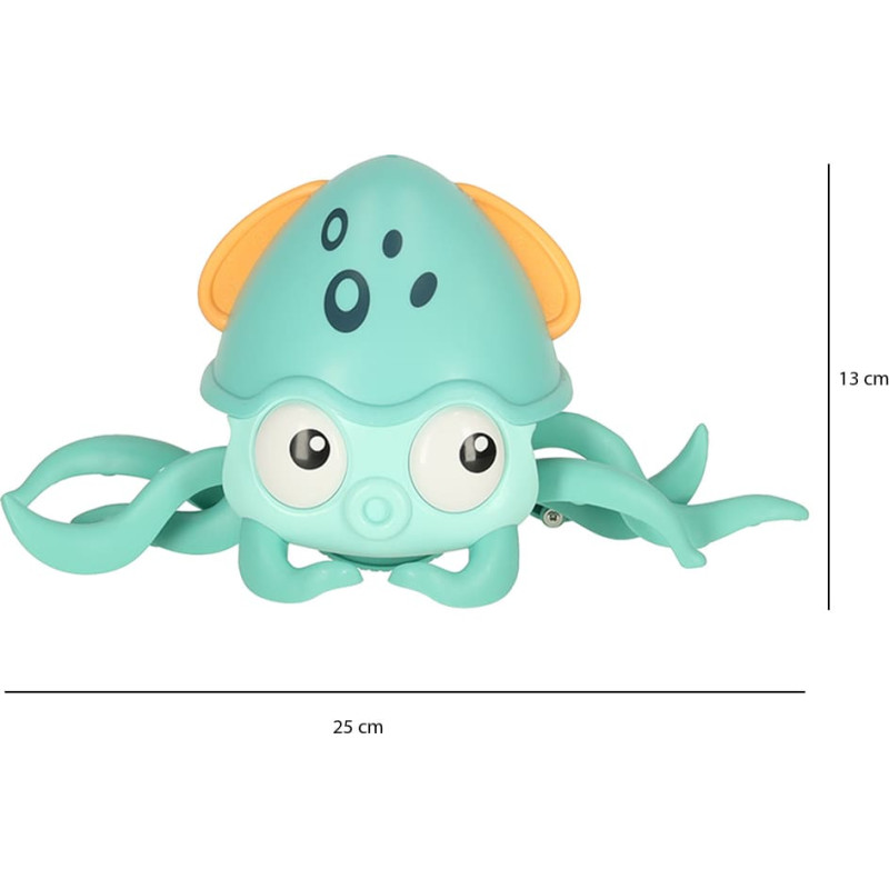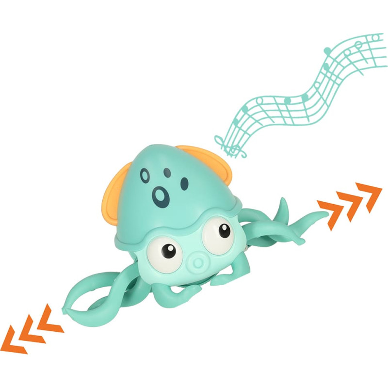 Meklējat rotaļlietu, kas ietekmēs jūsu mazuļa pareizu attīstību? Jūs varat beigt savus meklējumus! Šis rāpojošais astoņkājis noteikti paveiks savu uzdevumu! Bet ko šis zilais astoņkājis patiesībā var darīt? Tas var rāpot ātri! Tas padarīs to par lielisku izaicinājumu jūsu bērnam, lai tiktu tam līdzi. Turklāt dzīvnieka kustību vērošana būs fanātiska redzes maņu trenēšana. Lai gan dzīvnieciņš rāpo ātri, jums nav jāuztraucas par sienām vai mēbelēm jūsu mājās. Astoņkājis ir pietiekami inteliģents, lai no tiem izvairītos. Šī īpašība arī nodrošina, ka jūsu mīlulis nepārtrauks savu izklaidi, atsitoties pret dīvānu. Tiklīdz tas sajutīs šķērsli, tas ātri mainīs savu ceļu, un jautrībai nebūs gala! Papildus rāpošanai zilais astoņkājis arī atskaņo mūziku - tā, ka rotaļu laikā tiks stimulēta arī jūsu bērna dzirde. Visas rotaļlietas daļas ir noapaļotas, lai bērns rotaļu laikā būtu pilnīgi drošībā. Rotaļlietas galvenās funkcijas: Astoņkājis darbojas ar iebūvētu uzlādējamu akumulatoru, tāpēc jautrība noteikti būs bezgalīga. Tiklīdz dzīvnieciņš izsīkst vai, labāk sakot, nogurst, vienkārši pieslēdziet to, lai uzlādētu. Un pēc brīža, uzlādējot baterijas, tas atkal ātri rāpos. Rotaļlietas izgatavošanā izmantotie materiāli ir visaugstākās kvalitātes, lai jūsu mazulis varētu izbaudīt rotaļas ar astoņkājiņu pēc iespējas ilgāk.