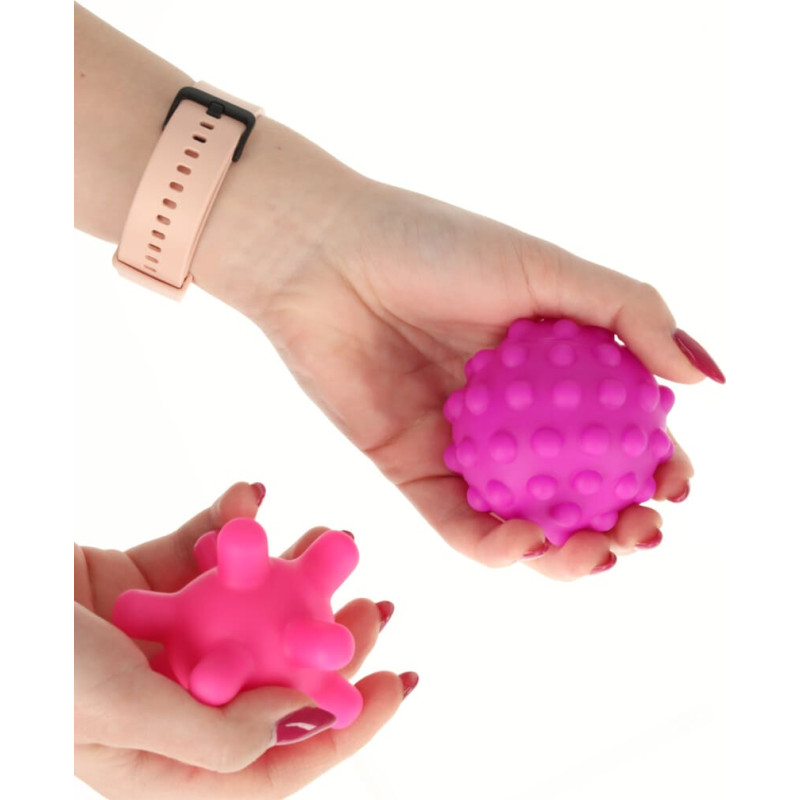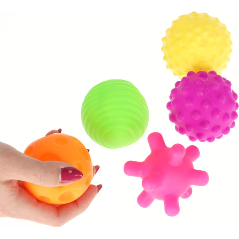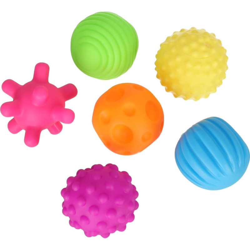 Komplektā ir 6 bumbiņas ar dažādām tekstūrām: -