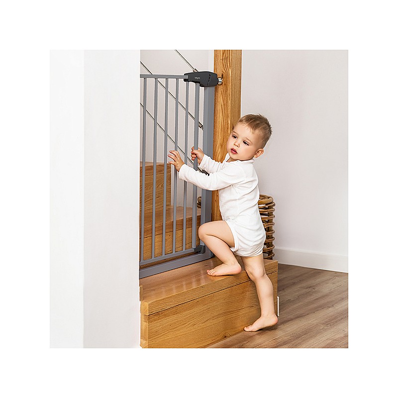 Drošības vārti ir maza drošības barjera, kas ierobežo bērna kustību atsevišķās mājas zonās. To var instalēt bez speciālām iekārtām un ir ideāli piemērots telpām vai kāpnēm ar ieejas izmēriem no 75 cm līdz 96 cm.  Regulējams platums, 75 - 82 cm + 2 x 7 cm pagarinājums. Augstas kvalitātes tērauda konstrukcija Ideāli piemērota bērniem līdz 24 mēn.