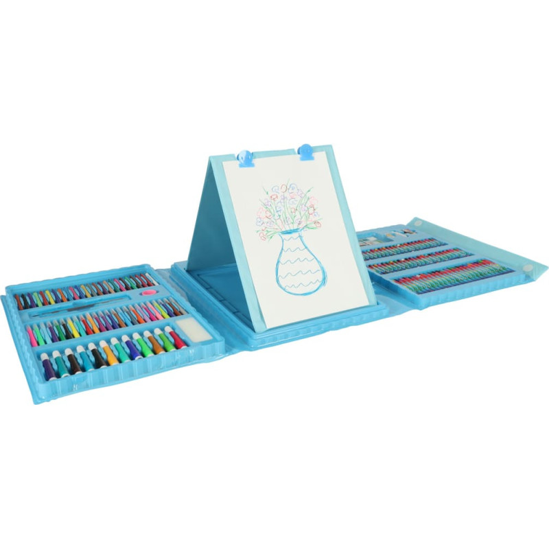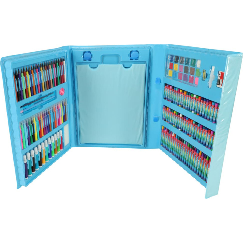 Stimulējiet bērna iztēli un radošās spējas ar šo mākslas komplektu. Maģiskajā koferī ir viss nepieciešamais rotaļām: krītiņi, marķieri, pasteļi, krāsas un citi noderīgi priekšmeti mākslinieciskajai darbībai: lineāls, dzēšgumija, ota u. c. KOMPLEKTS KATRAM MAZULIM Mūsu mākslas piederumu komplektā katram atradīsiet ko piemērotu - krāsojamās pildspalvas, zīmēšanas zīmuļus un krāsas gleznošanai. Visi tie ir piesātinātās krāsās, kas lieliski izskatās uz papīra. Tas viss ir ievietots ērtā futrālī, ko var viegli salocīt, aizvērt un paņemt līdzi - uz skolu, bērnudārzu, mākslas nodarbībām vai ceļojumā, lai gleznotu brīvā dabā! NE TIKAI BĒRNIEM Mākslas komplekts ir paredzēts ne tikai bērniem: bagātīgā krāsu palete un dažāda veida piederumi ir ideāli piemēroti skicēšanai, krāsošanai un daudzām citām darbībām. Pamodiniet sevī mākslinieku un paudiet sevi ar krāsu palīdzību!