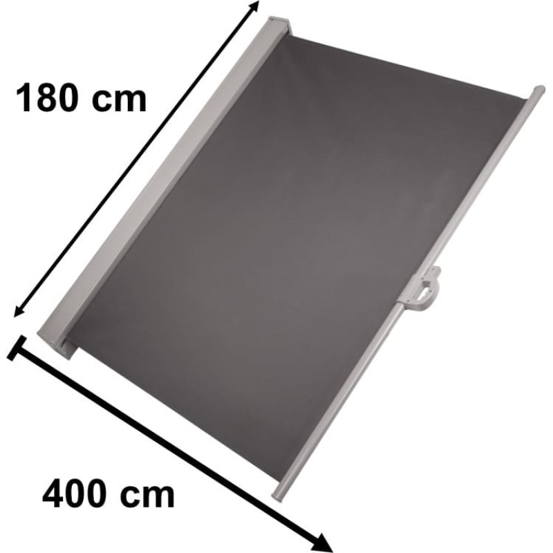 Liels dārza sānu MARKISĪTS - Tumši pelēks rullītis 180x400 Dārza sānu markīze ir efektīva aizsardzība pret kaimiņu skatieniem un vēju.