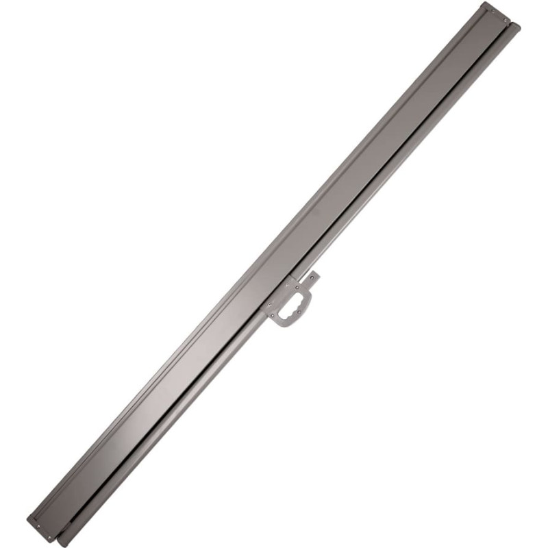 Komplektā ietilpst: - ievelkamais sānu rullis - montāžas statnis (grīdas kronšteins) - 4 montāžas skrūves - montāžas plāksne - uzstādīšanas instrukcija. Tehniskās specifikācijas: - Krāsa: tumši pelēka - Materiāls: presēts alumīnijs, poliesteris - Audums: poliesteris 180 g/m2 - Ekrāna augstums: 180 cm - Ekrāna platums: 400 cm - Auduma augstums: 174 cm - Caurules šķērsgriezums: 4x4 cm - Caurules augstums: 90 cm - Pamatnes izmēri: 8x10 cm - Rāmis: pulverkrāsojums - Nojume ir iepakota kartona kastē, kuras izmēri: - Noliktavas izmēri: 4,5 cm, 4,5 cm, 4,5 cm, 4,5 cm: 188 x 18 x 12 cm