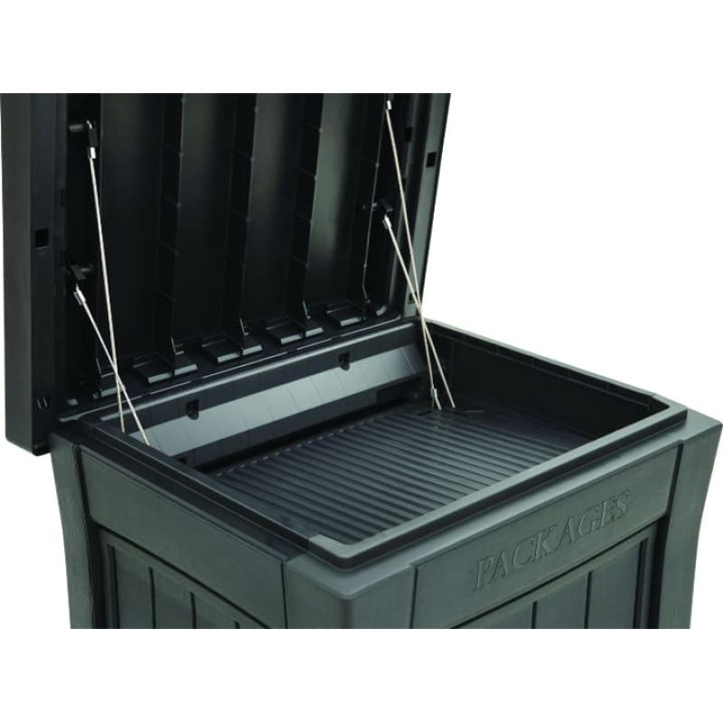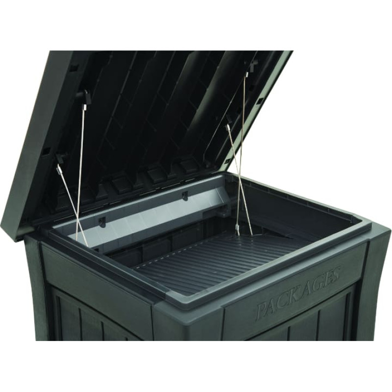 Parcel Drop Box ir lielisks veids, kā uzglabāt pasūtītās pakas, kas piegādātas jūsu prombūtnes laikā. Keter novatoriskais IN/OUT mehānisms ļauj saņemt pakas diskrēti un droši. Pēc sūtījuma ievietošanas iekšā neviens cits to nevar izņemt - to varat izdarīt tikai jūs. Viltīgi! Kaste ir ne tikai droša, bet arī praktiska. Paku kaste ir ļoti ietilpīga un veidota tā, lai tajā varētu ievietot visneparastāko izmēru pakas. To var viegli piestiprināt pie grīdas, tāpēc jums nav jāuztraucas par tā apgāšanos. Kaste ir slēdžama. Paku kaste ir labākais veids, kā pasargāt savus sūtījumus no lietus, vēja un zagļiem! Izmērs: 53 x 62 x 112cm Iepakojuma izmērs: 66.4 x 11.4 x 24cm Svars: 14.4kg