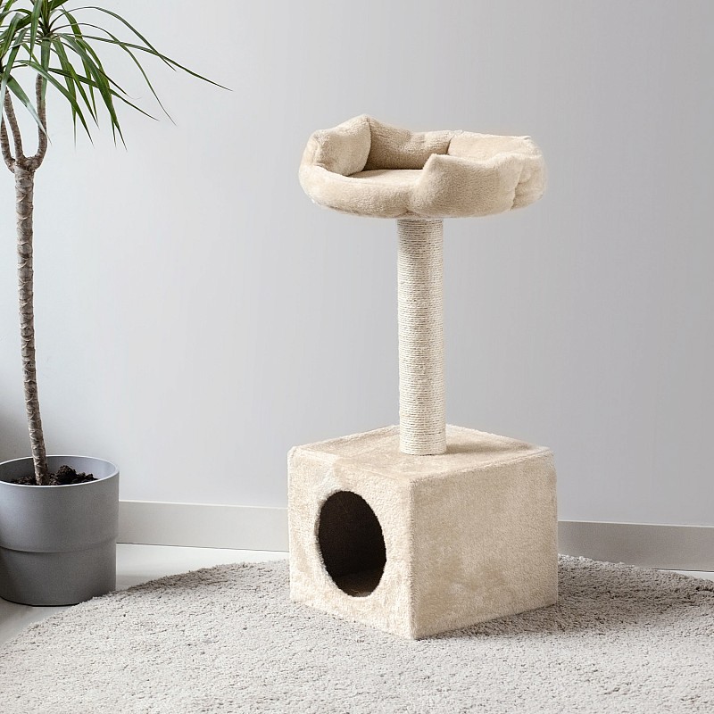 Kaķu skrāpis ar mīkstu gultni , 70cm, krēmkrāsā - Vangaloo