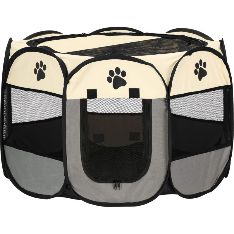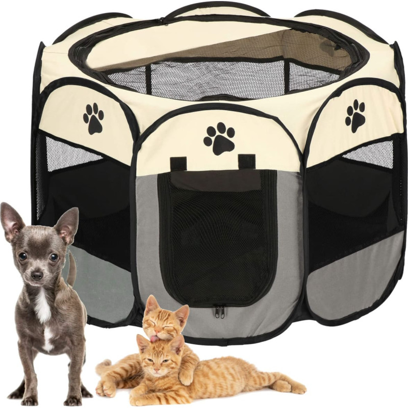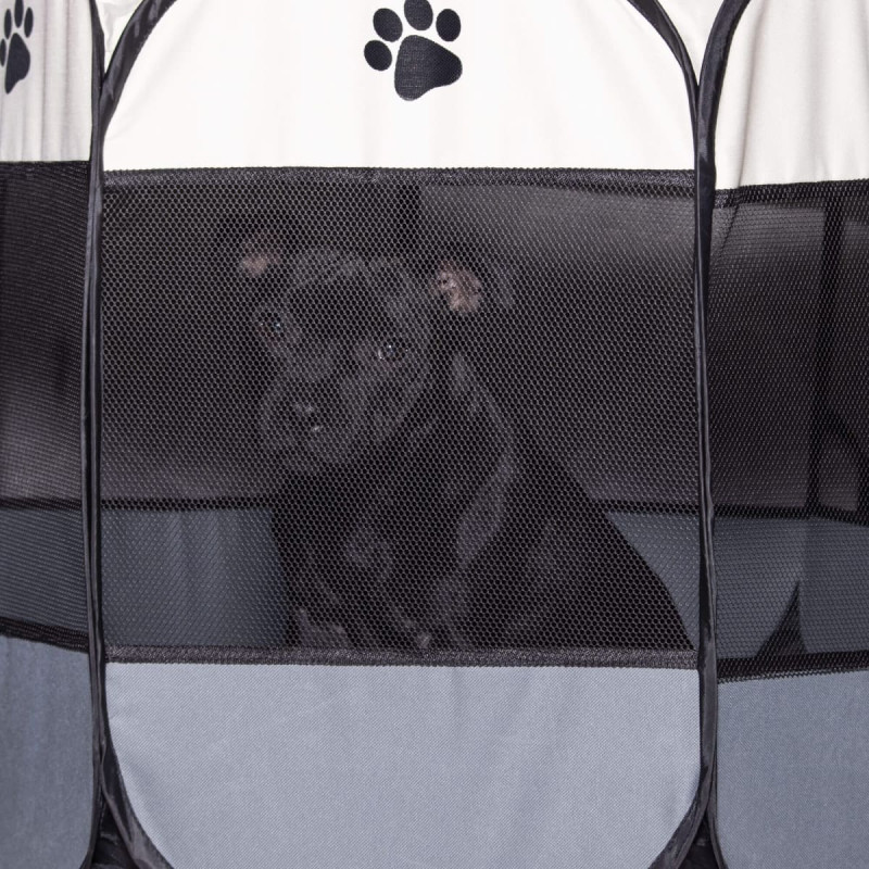 Varat to salikt un burtiski izlocīt dažu sekunžu laikāUniversāls lietojums - kā gulta / pagaidu ceļojumu māja / palīglīdzeklis apmācības laikā / drošas patversmes noteicējs (jauniem dzīvniekiem)Izturīgs pret traipiem un viegli tīrāmu materiāluPilna gaisa cirkulācija, katrai sienai ir gaisu caurlaidīgs sietsViegls, izturīgs un ciets materiālsMājdzīvnieks var brīvi vērot apkārtniLietošanai iekštelpās un ārāNoņemams & quot; jumts & quot; sētiņaSētiņas sieta struktūra pasargā no kukaiņu iekļūšanas (odu tīkls)Pieklusinātas, universālas krāsas un interesants dizains.--------- ----------------------------Materiāls: 100% poliestersKrāsa: pelēka / melna / bēšaProdukta svars: 700 gManēžas atvērums: rāvējslēdzējs + VelcroManēžas izmēri:garums: 73 cmplatums 73 cmaugstums: 43 cm* 5% pielaide iepriekšminētajiem izmēriemPildspalvas ieejas izmēri (atvere): 20 x 25 cm (platums x augstums)Salocītas pildspalvas izmēri :augstums: 46 cmplatums: 30 cmbiezums (garums ): 4,5 cmCiti izmēri:1. malas platums: 30 cmaugšējā vāka diametrs (noņemams ): 53 cm