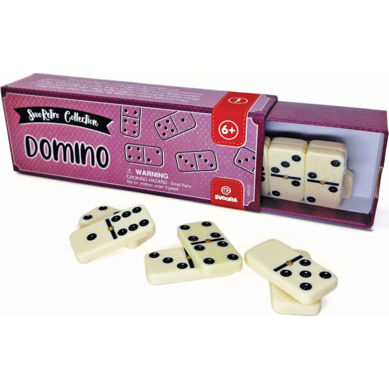 Skaitļu saderības spēle, kas paredzēta 2 līdz 4 spēlētājiem. Domino spēle sastāv no 28 spēļu kauliņiem, kuri sadalīti uz pusēm. Katrā no pusēm attēloti no 0 līdz 6 punktiņi. Spēles mērķis: pirmajam atbrīvoties no visiem kauliņiem. Izlieciet domino kauliņus uz galda ar cipariem uz leju, samaisiet tos un izdaliet spēlētāju starpā. Ja spēlē divi spēlētāji, katrs paņem 7 kauliņus, ja spēlē trīs vai četri spēlētāji, katrs paņem 6 kauliņus. Atlikušies domino kauliņi tiek nolikti malā un tiek ņemti spēlēs gaitā. Spēle notiek pulksteņa rādītāja virzienā. Spēlētājs, kuram ir vislielākais dubultā cipara kauliņš, sāk spēli novietojot šo kauliņu galda vidū. (Ja nevienam no spēlētājiem nav dubultā kauliņa, spēli sāk jaunākais spēlētājs) Nākamais spēletājs novieto domino kauliņu, uz kura attēlots tāds pats cipars, kā uz kauliņa centrā. Piemēram, ja pirmais tiek izspēlēts 5-5 kauliņš, tad nākamajam spēlētājam ir jāliek 5 punktu kauliņš, ar piecinieka pusi blakus otrajam kauliņam. Tad nākamais spēlētājs pievieno domino kauliņu rindai jaunu kauliņu, ievērojot iepriekšminētos noteikumus: blakus jānovieto divi domino ar vienādiem cipariem. Piemēram, ja domino ķēde beidzas ar kauliņiem, kuriem galā ir cipari 3 vai 2, tad nākamajam spēlētājam jāliek kauliņš, kuram galā būs cipari 3 vai 2. Ja sava gājiena laikā, spēlētājam nav domino kauliņa, ko uzlikt, viņam jāņem kauliņš no atlikušo domino kaudzītes un jāizlaiž gājiens. Uzvar spēlētājs, kurš pirmais atbrīvojies no saviem domino kauliņiem. Ir iespējams, ka spēle var tikt nobloķēta, kad neviens no spēlētājiem nevar veikt gājienu. Šādā gadījumā spēlētājs, ar vismazāko punktu skaitu uz atlikušajiem domino kauliņiem, uzvar. Brīdinājums! Nav piemērots bērniem līdz 3 gadu vecumam, satur sīkas detaļas, pastāv aizrīšanās risks.