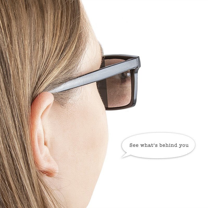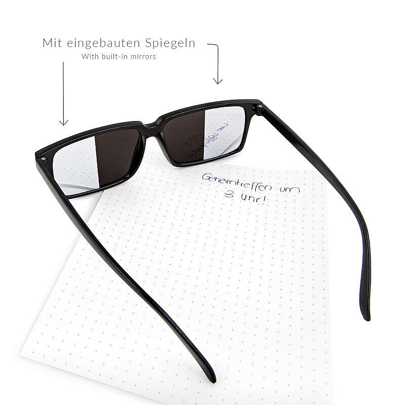 Spiegu brilles, kurām ir iebūvēti spogulīši, lai varētu redzēt, kas notiek aiz muguras. Izmērs: 14 x 4.2 cm. Izgatavotas no plastmasas un spoguļa folijas. Brīdinājums! Nav piemērots bērniem līdz 3 gadu vecumam, satur sīkas detaļas, pastāv aizrīšanās risks. Izcelsmes valsts: Ķ.T.R.