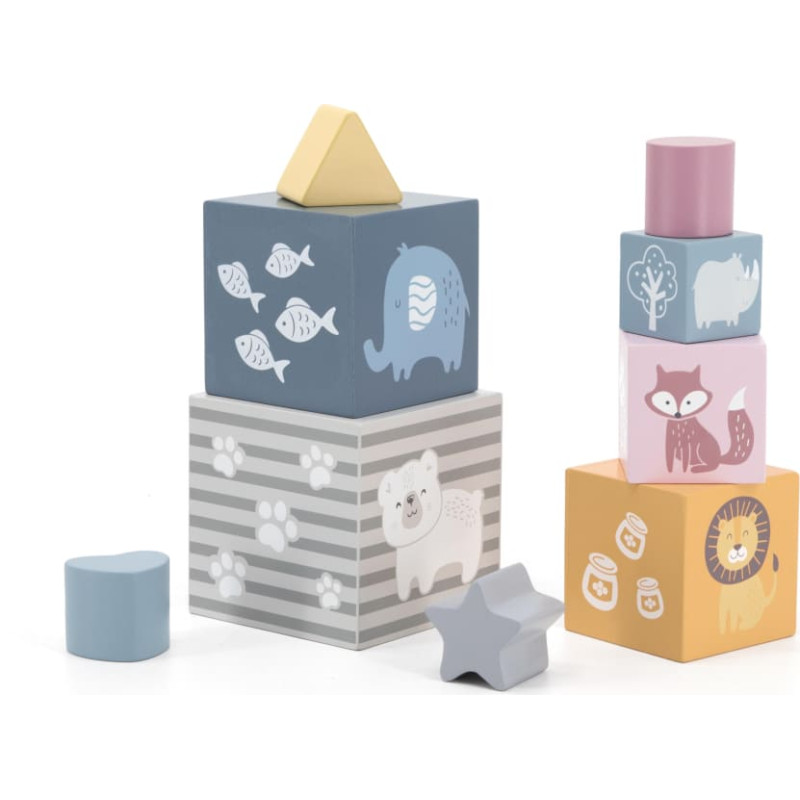Lieliska rotaļlieta, lai attīstītu loģisku un telpisku domāšanu, sīko muskuļu darbību, uzmanību un atmiņu. Lieliski sagatavo mazuļa roku rakstīšanai. Tā ir savdabīga rotaļlieta – trenažieris pirkstiņu attīstībai. No 2 gadu vecuma. Iepakojuma izmērs (GxAxP): 9x9x9 cm. Materiāls: koks.