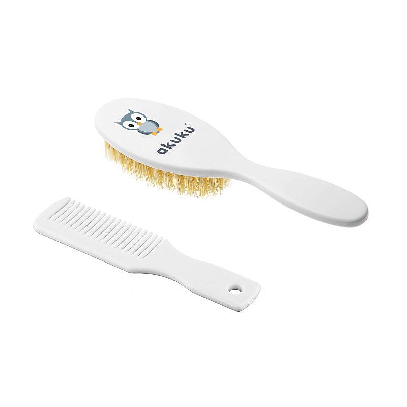 AKUKU ķemmes komplekts ar dabīgiem sariem 0m+ A0307 white