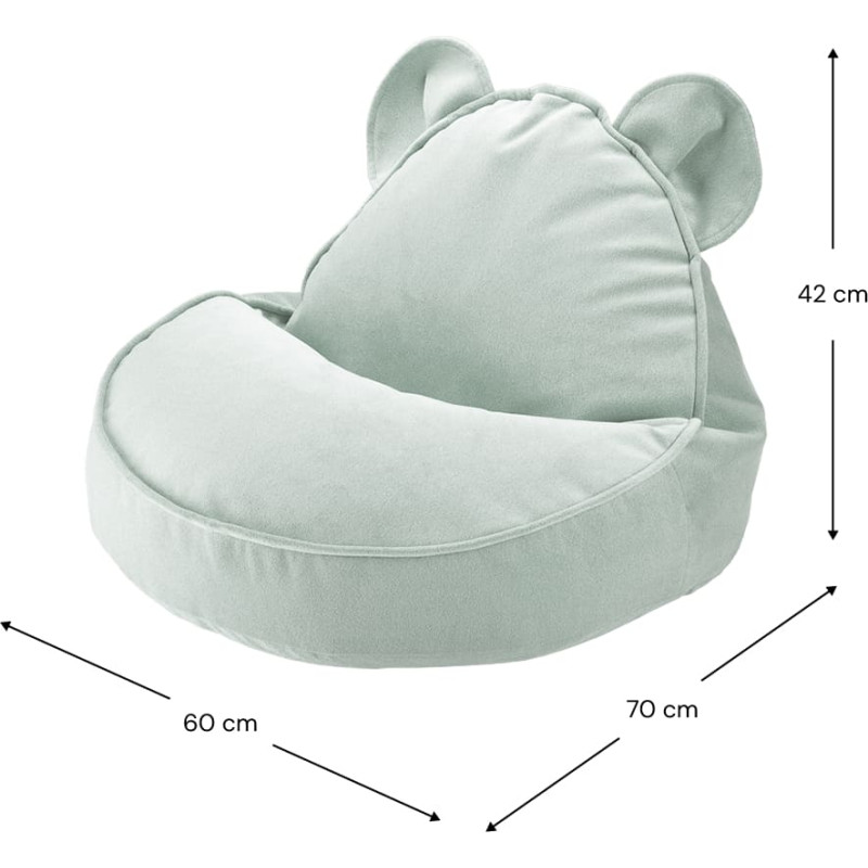 Šis mīlīgais lācīša sēžammaiss ir grezns un funkcionāls papildinājums jebkurai bērnistabai. Ikvienam ir nepieciešama ērta vieta, kur relaksēties un lasīt savu mīļāko grāmatu pēc garas dienas, un WigiWama mājīgais lācīša sēžammaiss ir ideāla izvēle. Un paskatieties uz šīm mazajām austiņām! Ideāli. Ārējais pārvalks: OEKO-TEX® un GRS® sertificēts samts, kas izgatavots no pārstrādātām PET pudelēm, 100% poliesters Iekšējais pārvalks: 100% poliesters, STANDARD 100 by OEKO-TEX® netītais šķiedras audums Pildījums: 100% ekspandēts polistirols Izmērs: Garums 70 cm / Platums 60 cm / Augstums 42 cm Ar rāvējslēdzēju, lai pārvalku varētu noņemt un mazgāt pēc instrukcijas Izgatavots ar rūpēm Latvijā, parūpējoties par mūsu planētu